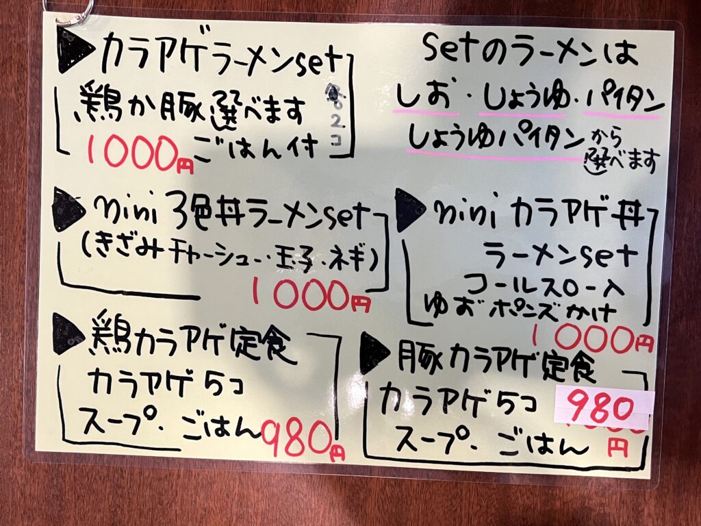 今回私が選んだのは「miniカラアゲ丼ラーメンset」(1,000円)。