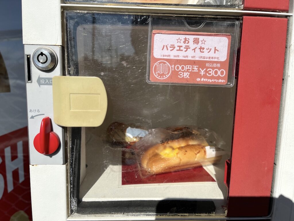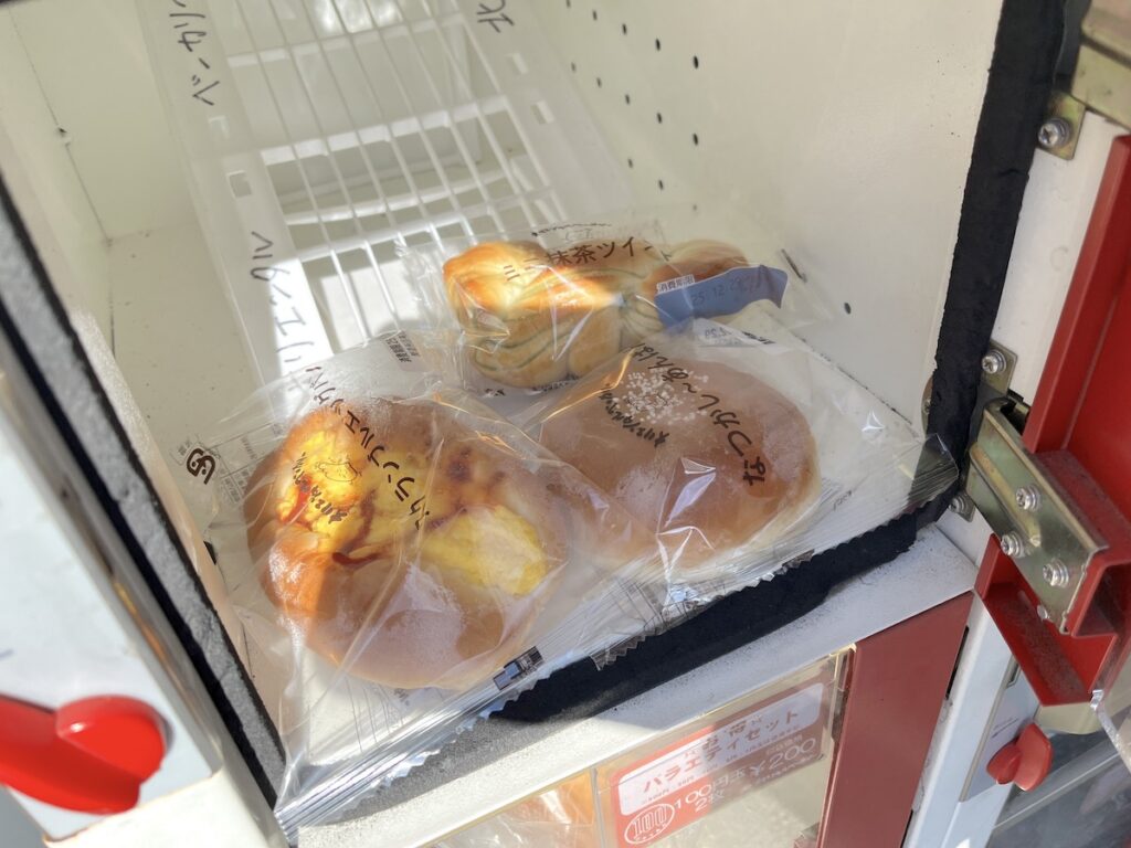 せっかくなので、この日はロッカー販売でいくつかのパンを購入。100円硬貨を入れてダイヤルを回す購入スタイルが、ちょっと懐かしくて楽しい体験でした。