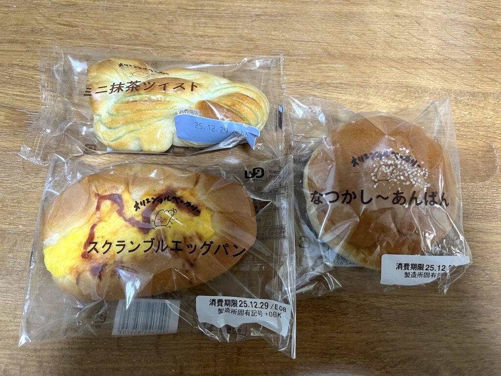 「なつかし〜あんぱん」「ミニ抹茶ツイスト」「スクランブルエッグパン」をいただきましたが、どれもやさしい味わいで飽きのこないおいしさです。