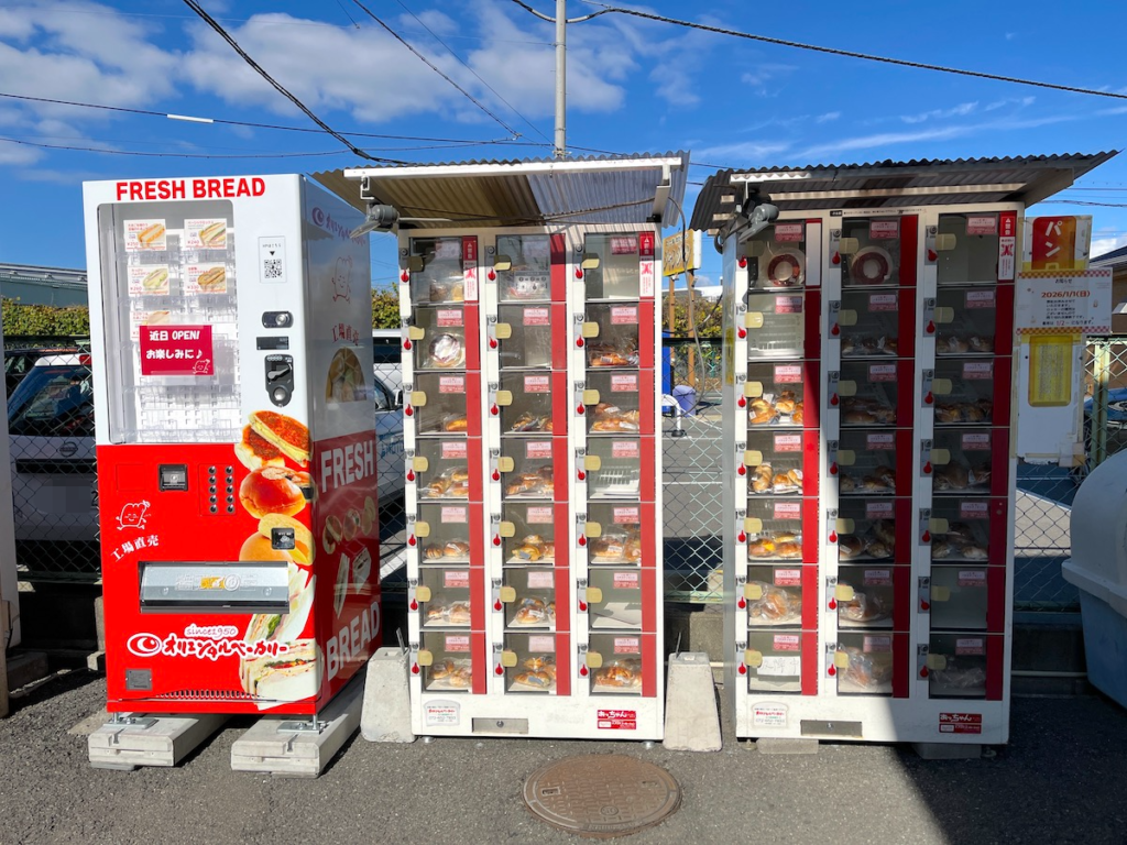 これまで菓子パンやバウムクーヘンなどを販売していたロッカー型販売機に加え、冷蔵商品も扱える自販機が新たに登場。これでサンドイッチや惣菜パンなど、種類豊富なパンをいつでも気軽に購入できるようになりました。