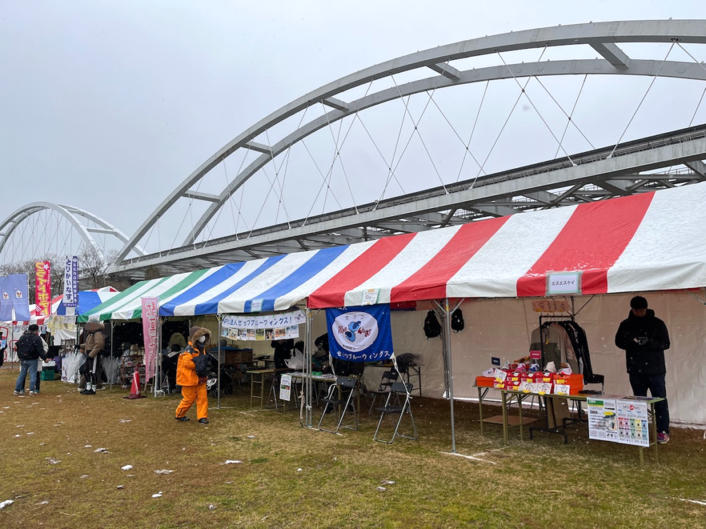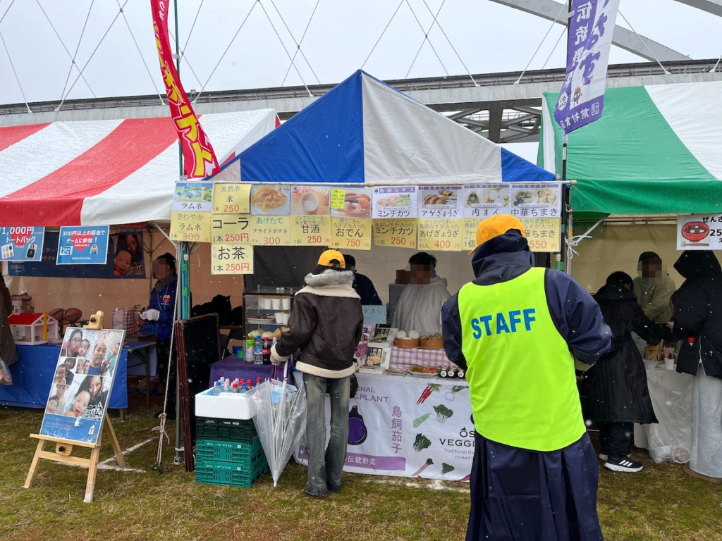 ラムネやコーラといった冷たい飲み物、そして揚げたてアツアツのフライドポテトやミニチカツなど、様々な商品を用意したブースには人が絶えませんでした。観客は冷えた体を温め、ランナーたちは走り終えた火照った体をクールダウンさせるなど、それぞれの目的に合わせて立ち寄る様子が見られました。