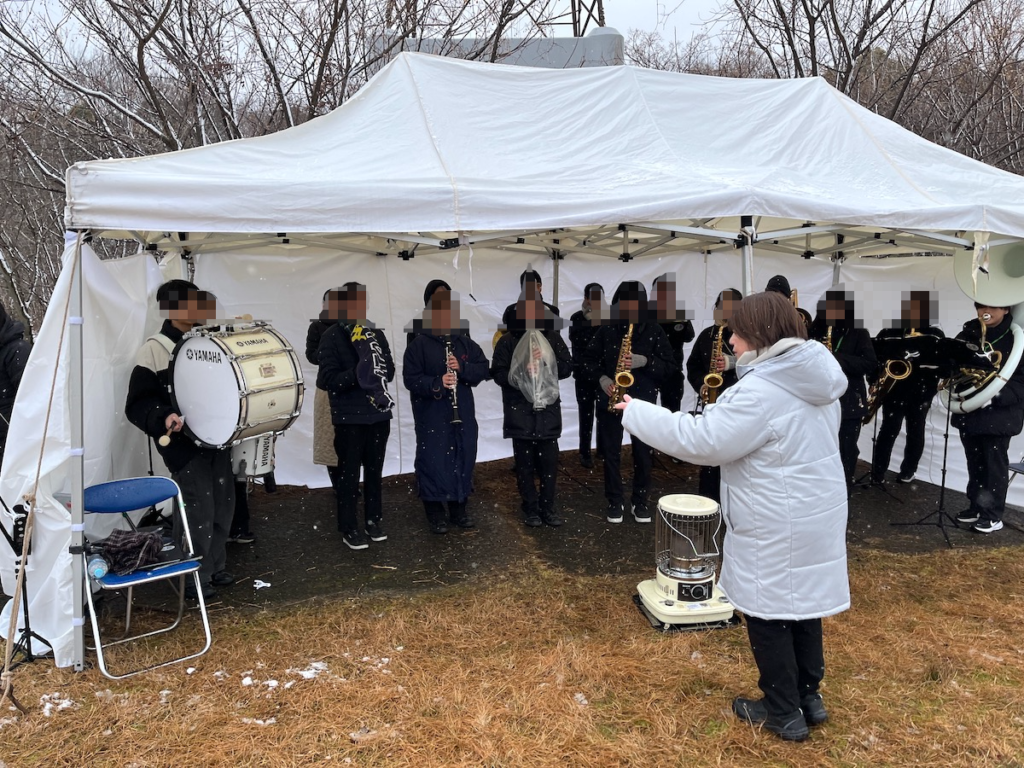 凍えるような寒さで指先の感覚も失われそうな中、それでも力強い演奏で走者を鼓舞し続ける姿は、見ているこちらも胸が熱くなるものがありました。きっと多くのランナーがその音色に背中を押されたはずです。